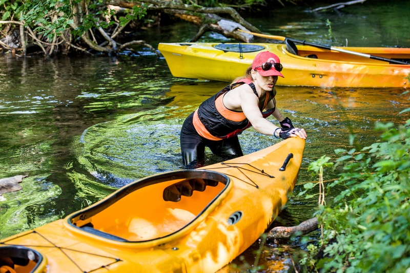 Szybkoschnące ubrania. Nie ukrywam, że lepiej nie wybierać najlepszych ubrań z szafy, gdyż mogą ulec zniszczeniu. Samo szorowanie tyłkiem w kajaku, na przykład w pozycji na "mumię" , umożliwiającej przepłynięcie pod drzewami lub opadającymi konarami, nie sprzyja niektórym materiałom.