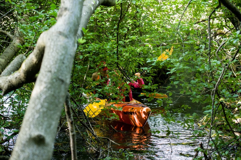 Łupawa hält den Abstand zwischen den Kajaks ein, um Hindernisse, die von der Natur geworfen werden,